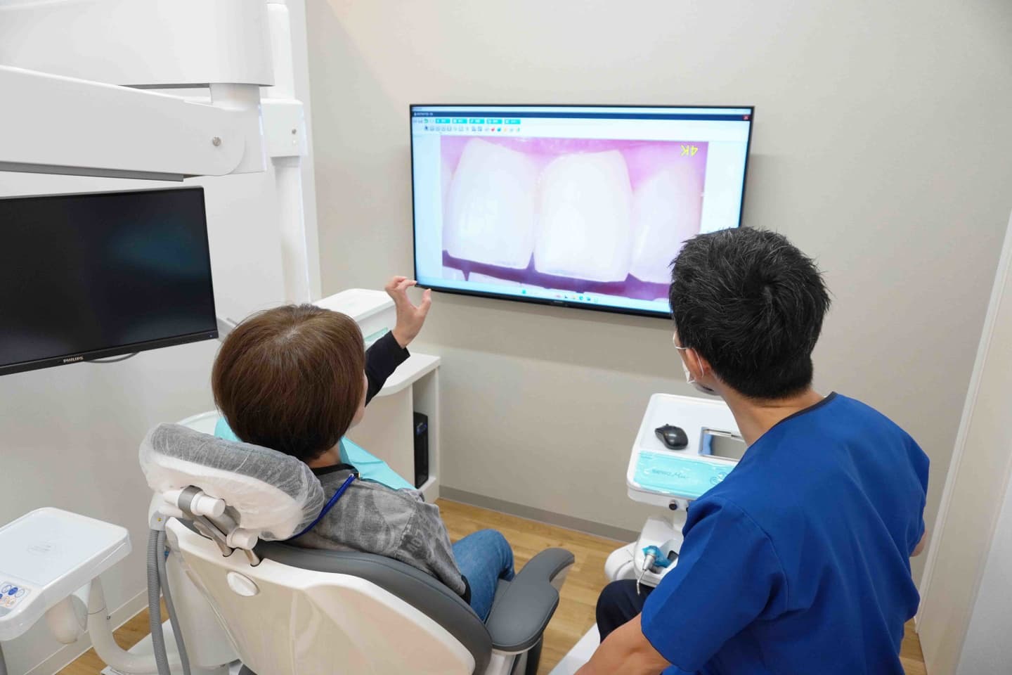 一度、抜いたり削ったりした歯は元に戻りません。当院では患者さまの大切な歯をできるだけ残し、なるべく痛みを軽減する治療を心掛ける為、電動麻酔注射器やデジタルスコープ「ネクストビジョン+」を導入しております。ネクストビジョン+は最高倍率80倍・4K画質映像をリアルタイムで映し出せる為、より繊細な治療が可能になることに加え、患者さまと一緒に口腔内を確認し、共に治療計画を立てられる事も特徴です。