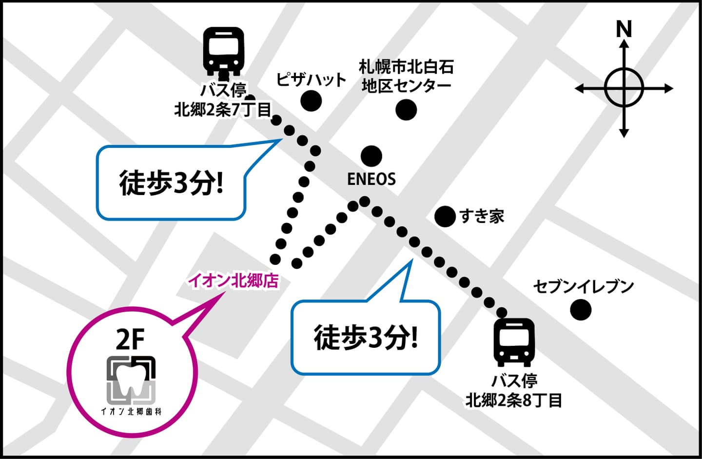 バス停北郷2条8丁目から徒歩3分