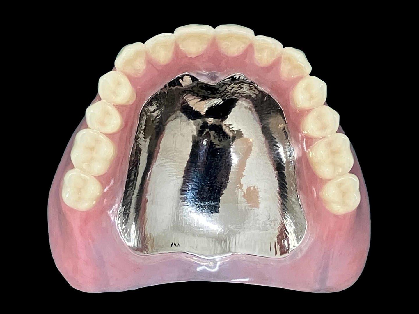 コバルトのメタルプレート機能にプラスして、チタン特有の生体にやさしく、コバルトよりもさらに比重が軽く、薄くて丈夫な材質です。生体にやさしいので、人工歯根(インプラント)にも使用されていることから、安心・安全です。
